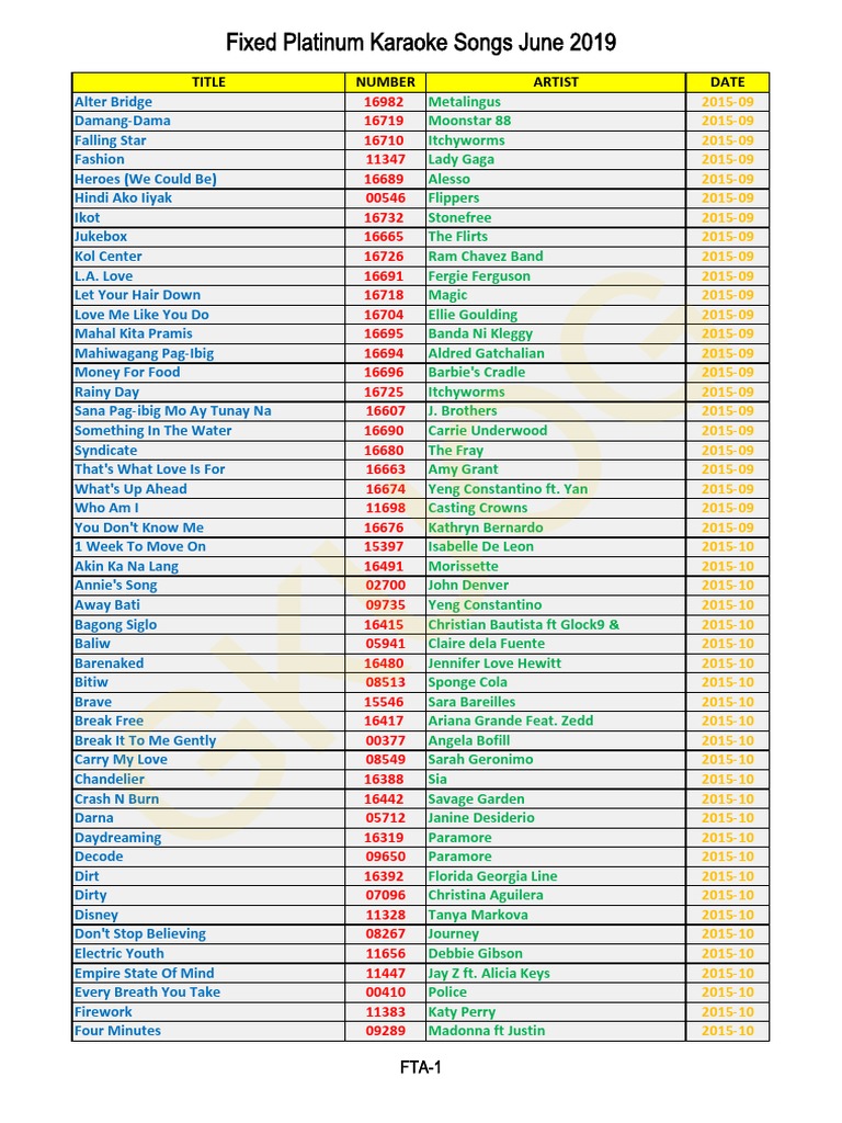 2019 06 Fixed Platinum Karaoke Songs P Pdf Musicians Artists